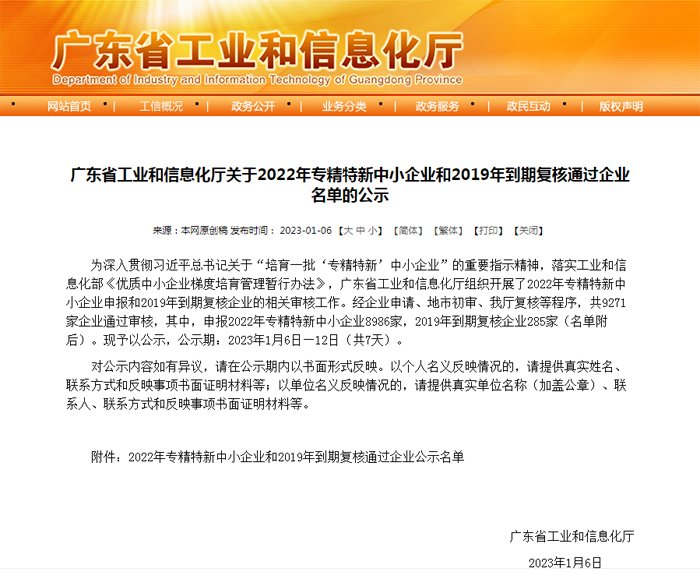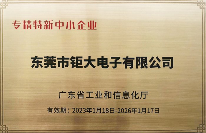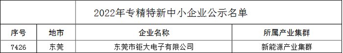 据来自广东省工业和信息化厅官网发布的消息,锂电池制造厂家东莞市钜大电子有限公司(简称:钜大锂电)入选广东省“2022年专精特新中小企业”名单,经公示后,日前获正式授匾。